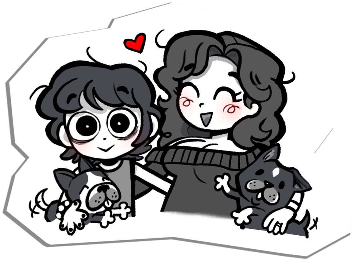 Bugs and Spider first befriended each other in 2012, over shared interests in horror and writing. Over a decade later they're married with two elderly dogs (Naina the frenchie, and Craita the boston with no eyes!) and function as creative partners, fulfilling childhood dreams they once shared of being able to make their stories come to life.